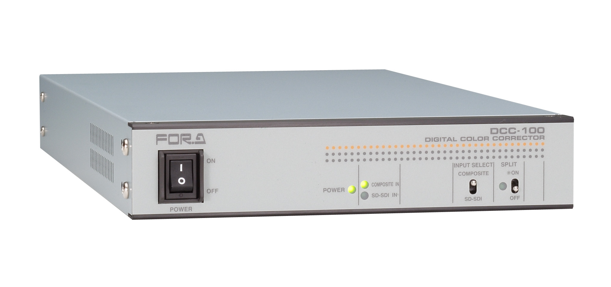 This is a digital color corrector that supports analog composite or SD-SDI input and output signals. It comes with a broad spectrum of functions ranging from the color correction of signals to various clip functions.