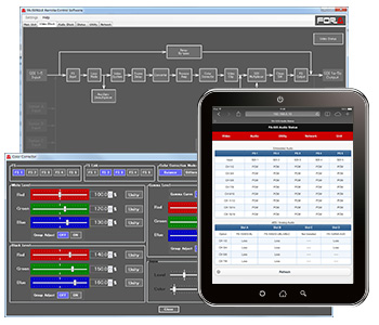 The FA-505 comes standard with a dedicated application that runs on Windows, providing full access to many functions, and allows a wide variety of settings. Web server functionality is also implemented in the main unit, allowing adjustments* to be made to various parameters from mobile and tablet devices.