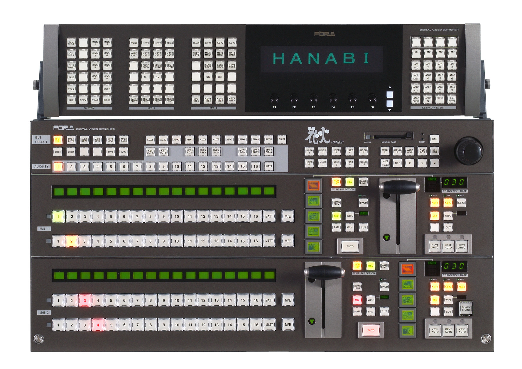 The 2M/E HANABI has made another dramatic advance by adding HD/SD multi-bit rate/multi-format support*, Real 3D digital video effects (DVEs), color correction, a wide range of expansion options for ensuring future compatibility, and a host of other functions. The HVS-3800 series offers functions and performance that are a step ahead of the competition. *HVS-3800HS only. The HVS-3800S is SD only.