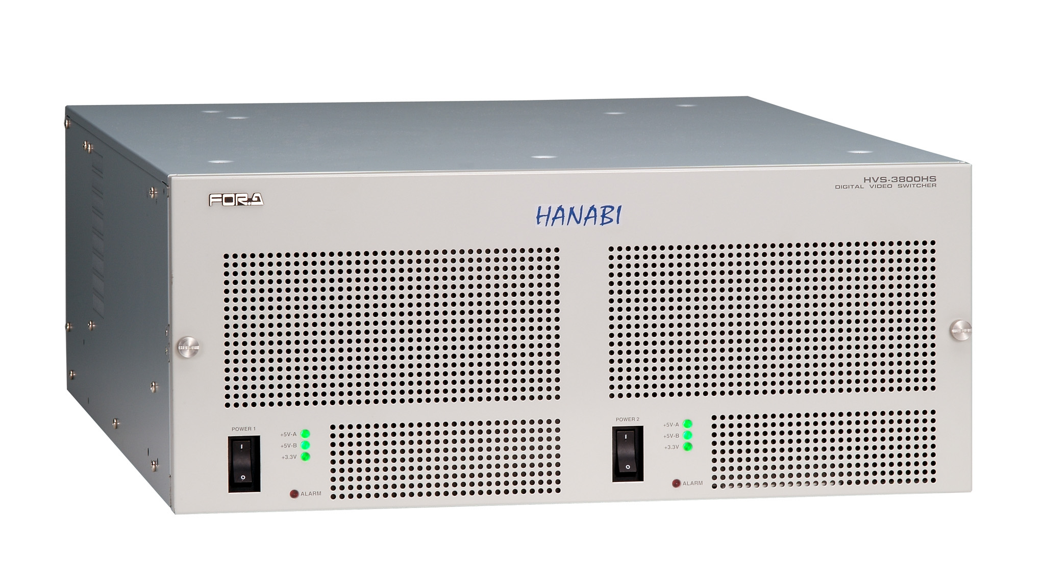 The main unit incorporates a redundant power supply, DVE cards, additional function options, and a wide range of other functions in 4RU size. The additional function options also allow installation of a number of video peripherals for use of fewer system devices and reduced space.