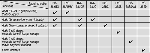 An optional frame memory HVS-38SSAM6/12 can be installed as an expansion function to enable storage and playback of movie files as uncompressed HD video.