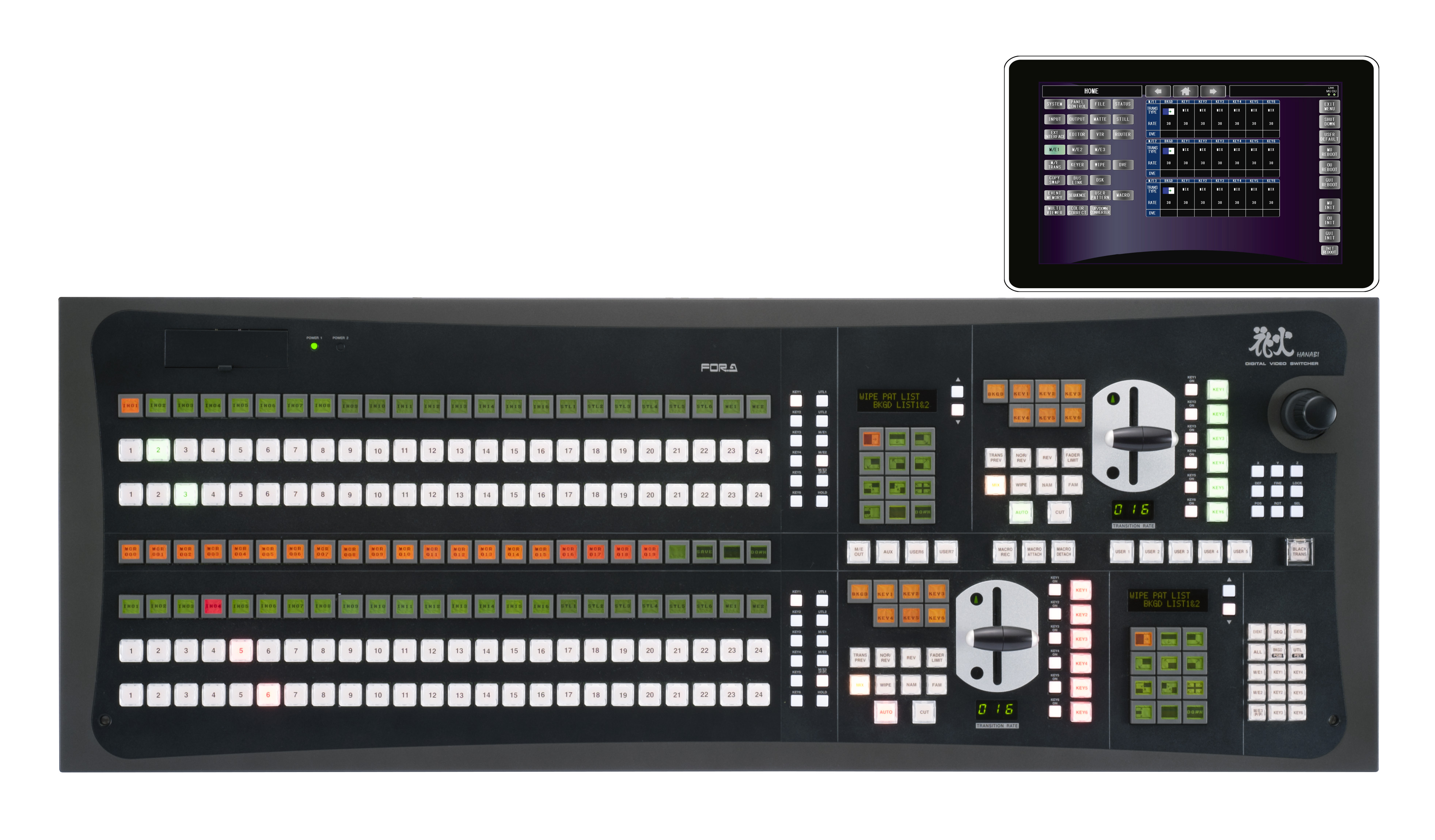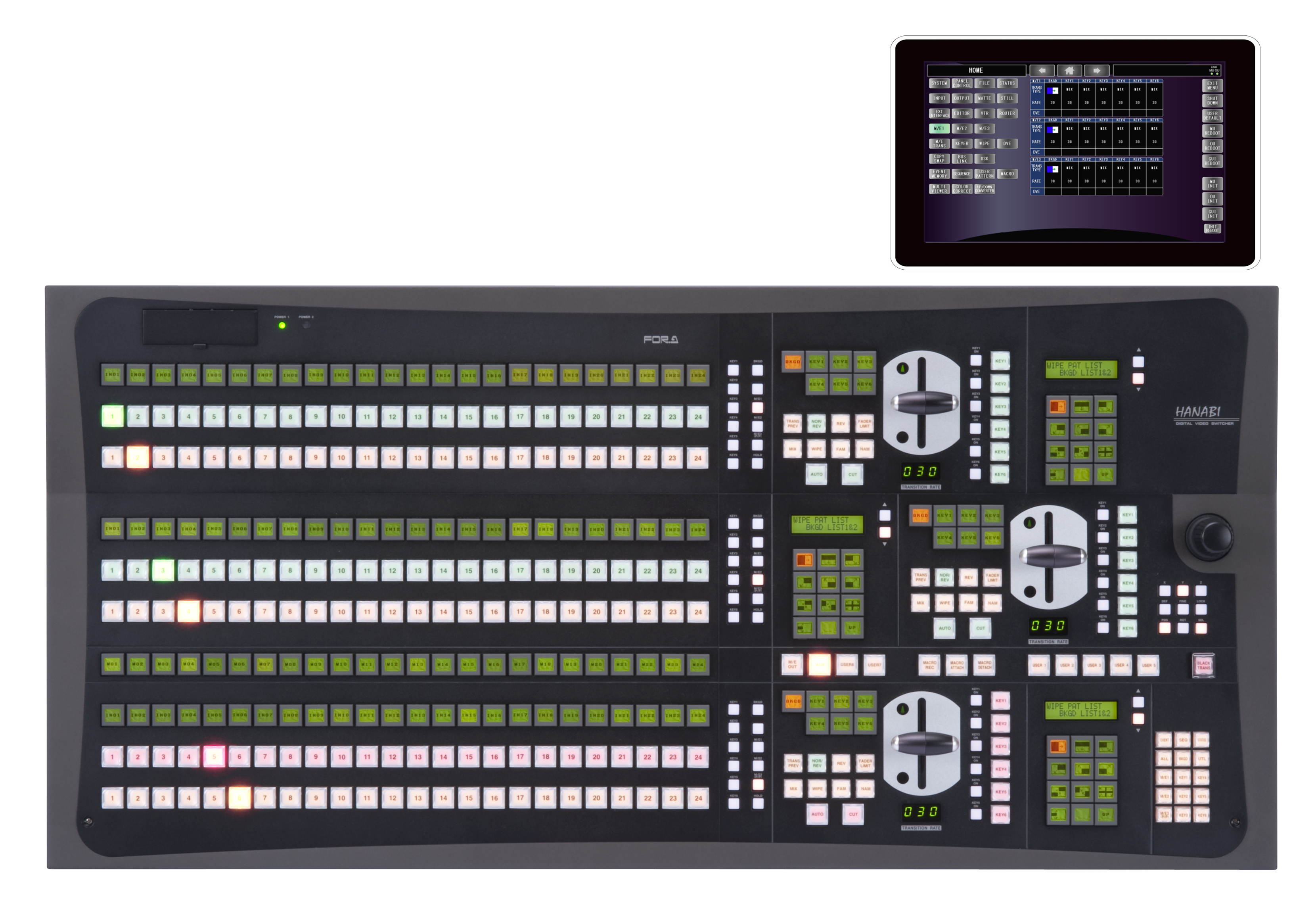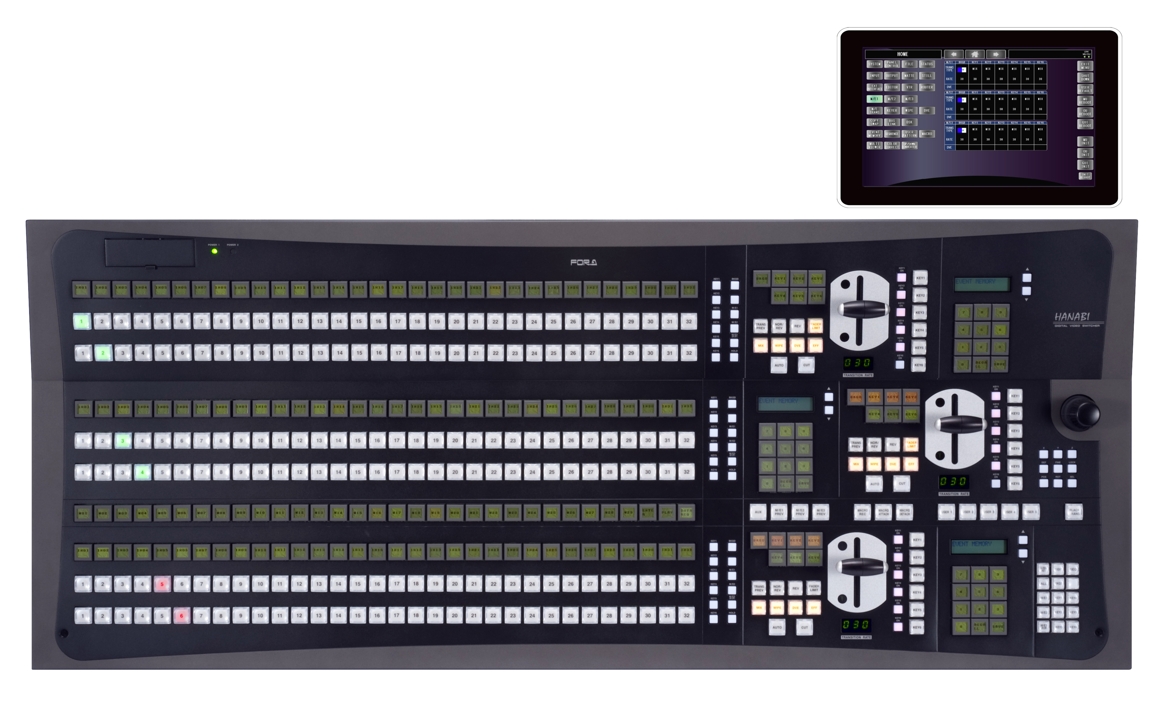 FOR-A’s HVS-4000 is a 2 M/E, 2.5 M/E, or 3 M/E multi format video switcher. It has a wide range of features, including HD/SD mixed input, 3 Gbps support, 2.5D and 3D DVE, multiviewer, up/down converter, external device control, macro function and video file support. It also comes with a number of interfaces and functions for connecting to external devices, making it extremely useful as the core device in your video production system.