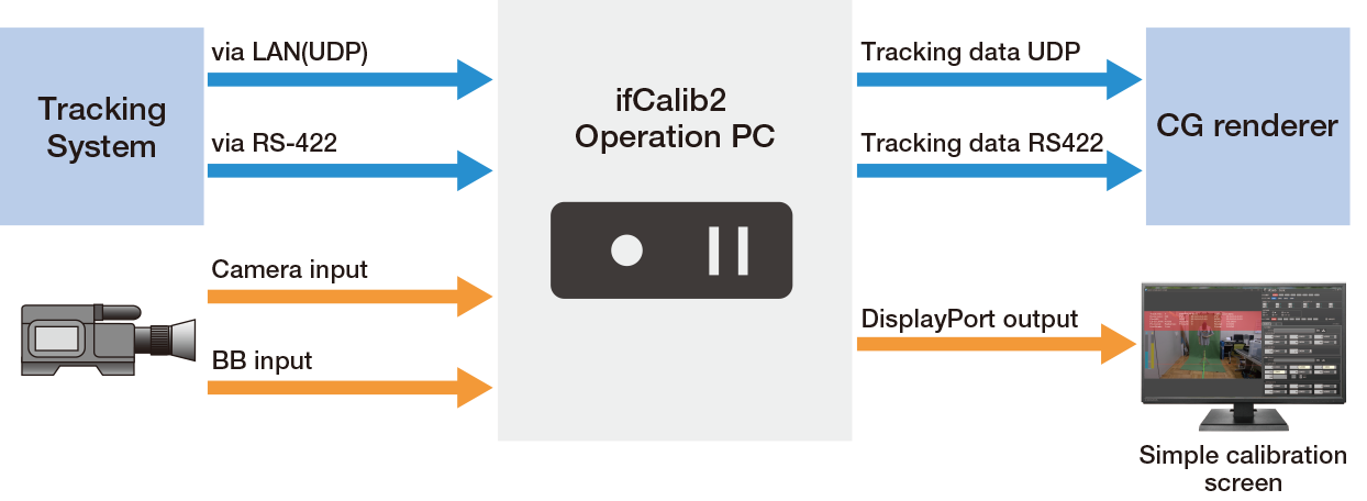 - Tracking data input/output via RS-422 or over a network (UDP)