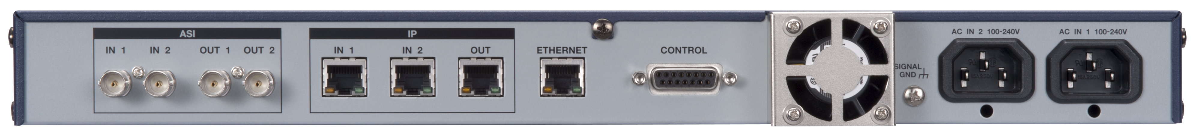 Choose ASI or IP for each signal supplied. Enables mixed input, using IN 1 on the IP side and IN 2 on the ASI side, for example. Ideal for redundant ASI/satellite operation.