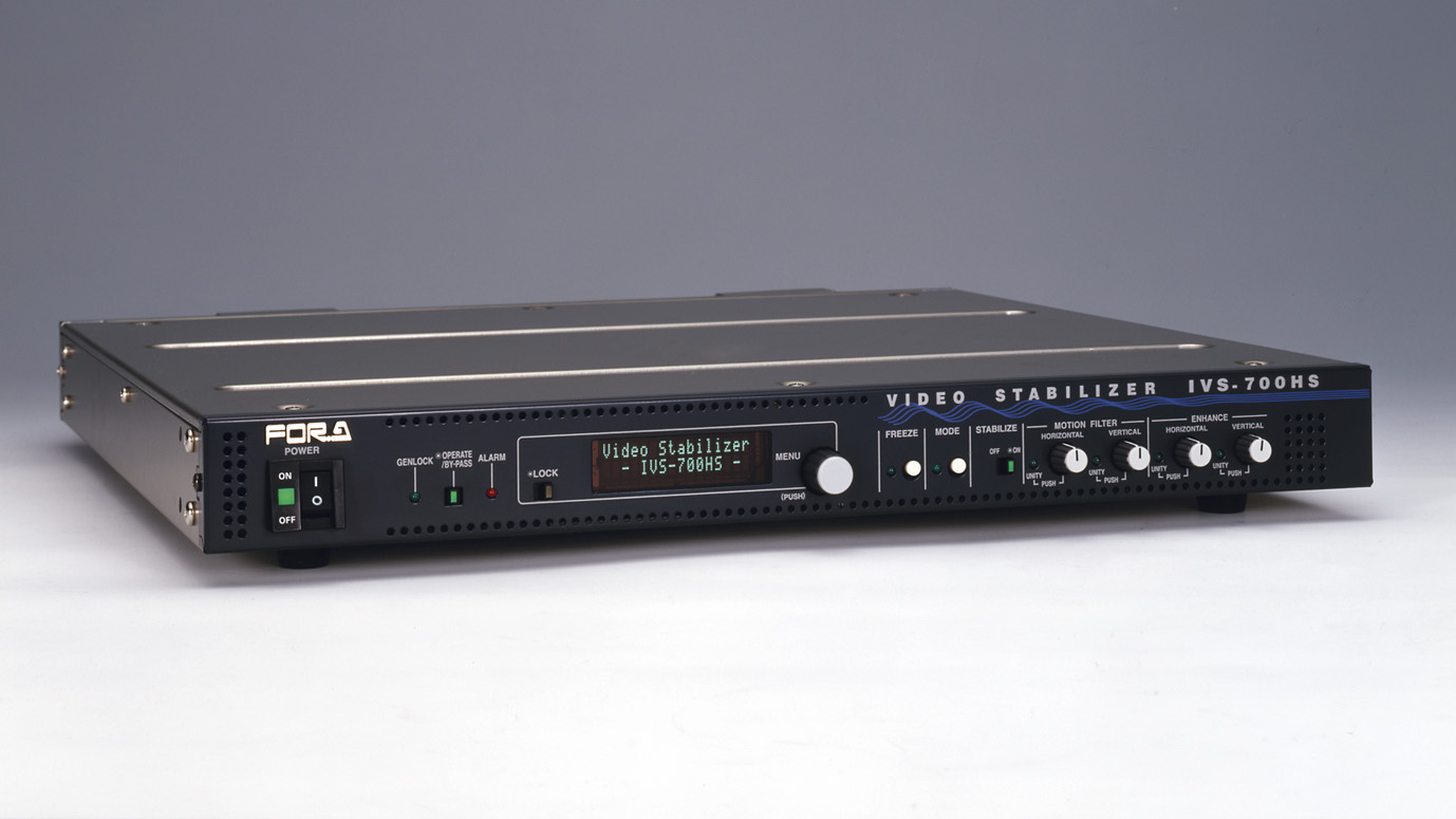 An HD/SD multi bit rate digital video stabilizer, the IVS-700HS uses a moving image processor to electrically correct shaky camera images, with the ability to correct only the unintentional instability, while maintaining pan and tilt movements of the camera. The IVS-700HS can also correct unsteadiness on recorded VCR tapes.