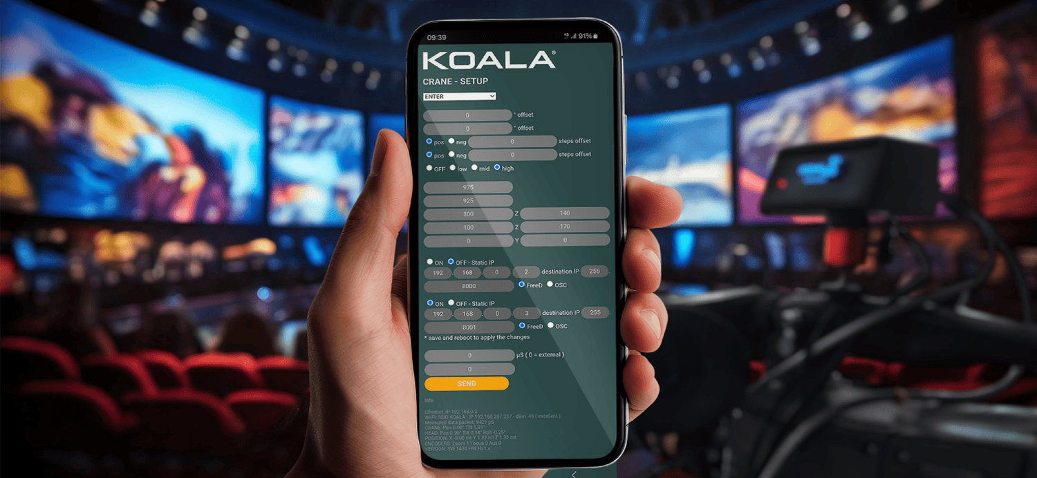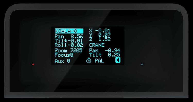 KOALA ‘senses’ the movements of the camera and sends the PAN, TILT, and ROLL data. If you use the CRANE option, you will also get the XYZ position of the camera.