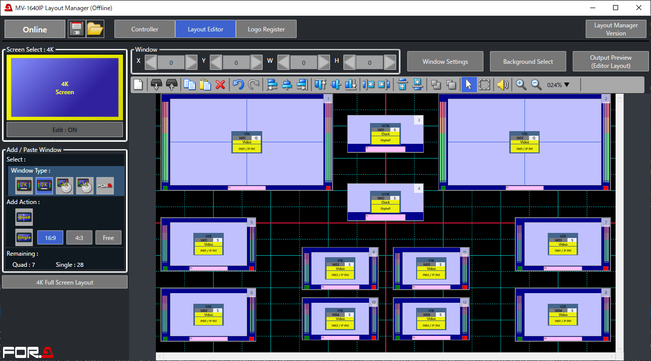 - Uses NMOS IS-04 for stream registration and NMOS IS-05 for stream switching. - Windows: Freely layout up to 25 windows for one 4K or up to 40 windows for four 2K signals.