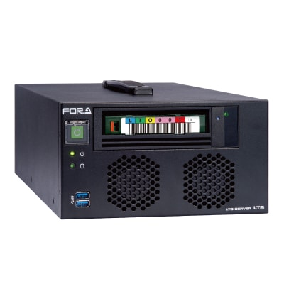 LTO server equipped with an LTO-8 drive. Store up to 12 TB of video and audio media on LTO-8 tapes when used in uncompressed mode.