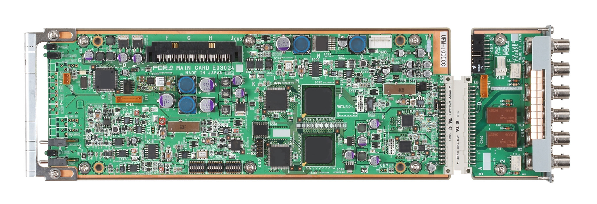 The UFM-100DCC is a modular type of color corrector that can be installed in a UFM frame. It supports analog composite or SD-SDI input and output signals.