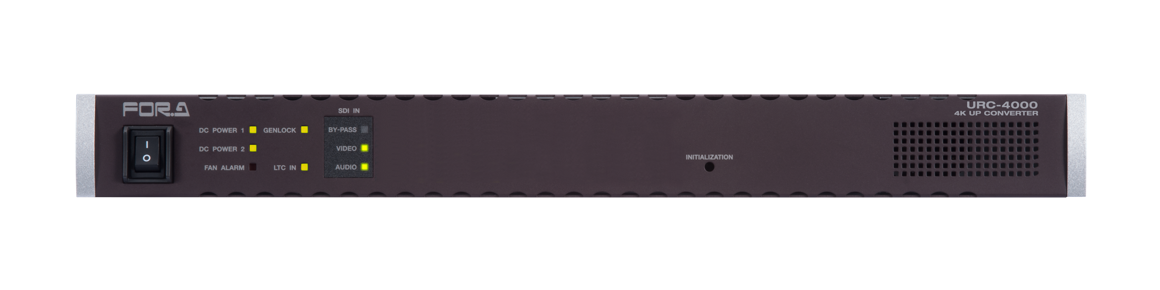 The URC-4000 provides powerful up-conversion and turns HD video into 4K in real time. Original I/P and resolution conversion developed by FOR-A, unleashes a new era in 4K conversion. Spatiotemporal frame interpolation is performed in which spatial and temporal changes in images are detected in high precision, on a pixel-by-pixel basis. Aliasing from conversion are reduced, and the resolution of still image areas is restored. Resolution is further improved through multi-scale nonlinear enhancement. An optional redundant power supply is also available, and firmware can be updated remotely over the Internet. Explore new territory in 4K.